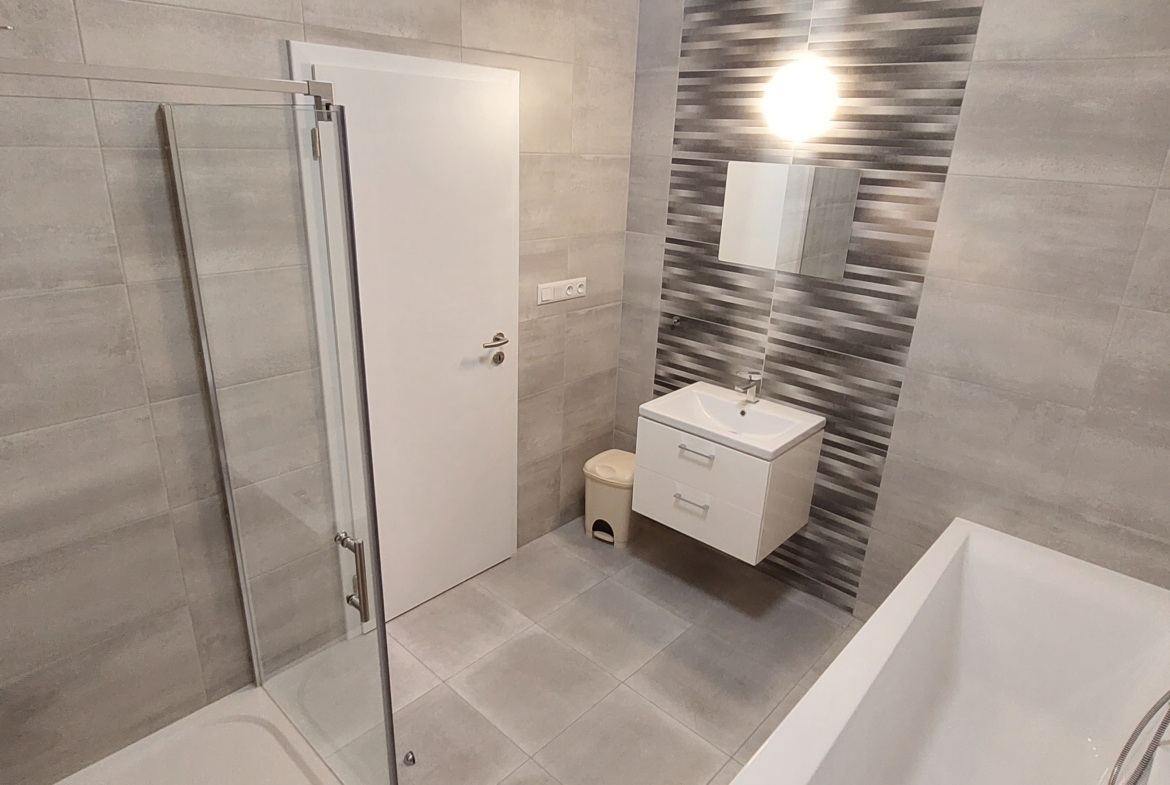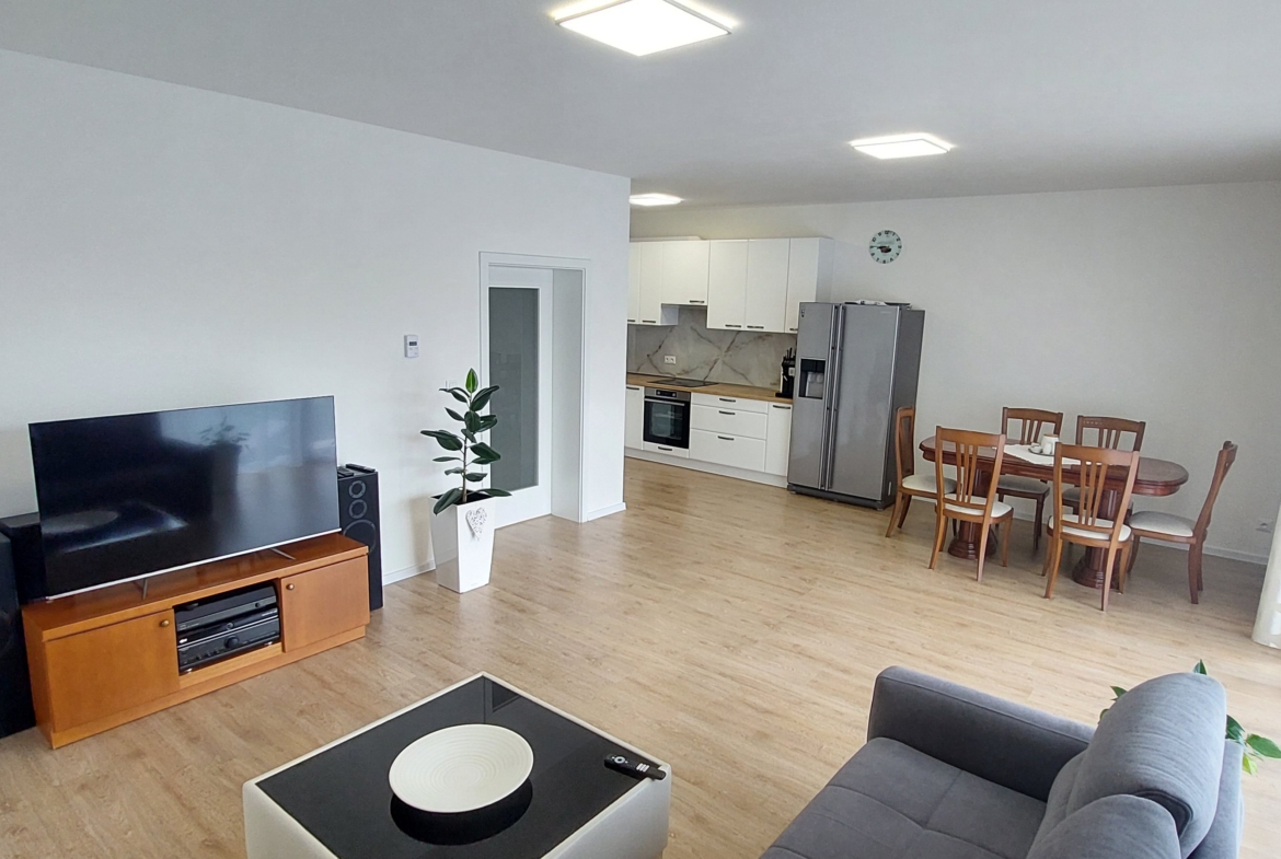 Velmi prostorná bytová jednotka má celkovou užitnou plochu 96 m2.