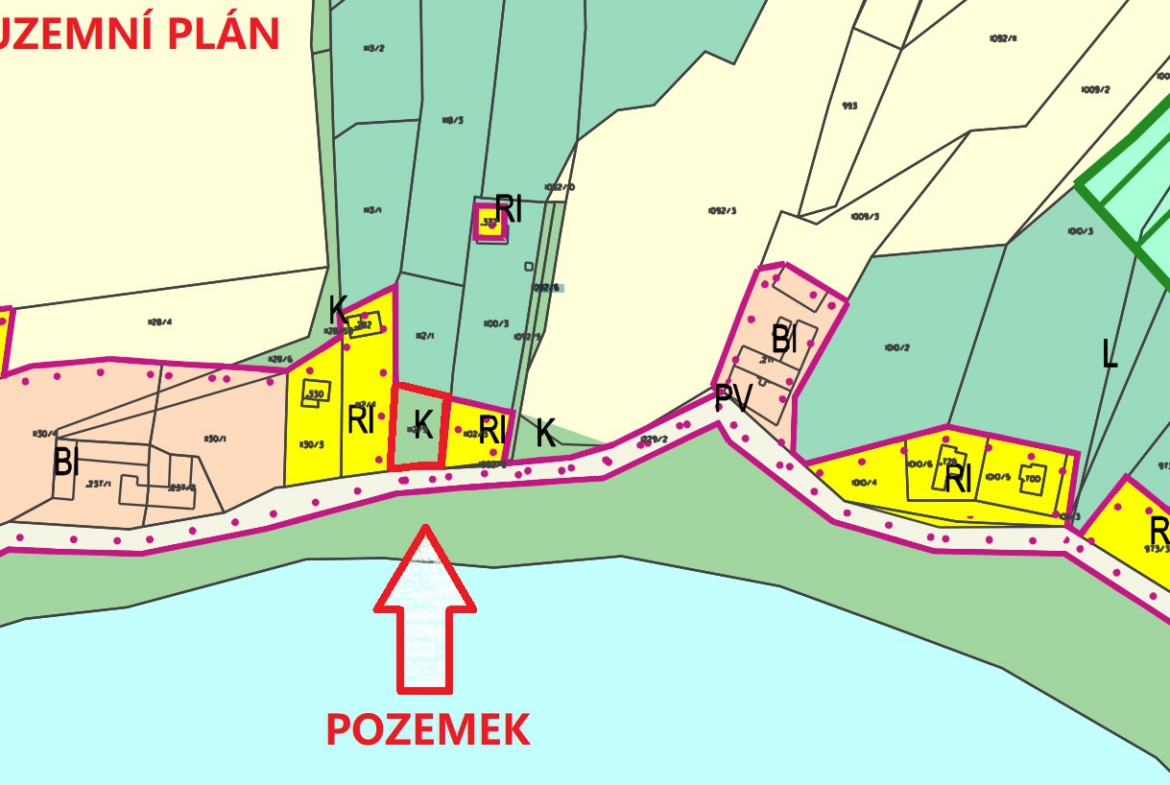 Pozemek není určen k výstavbě rekreační chaty, ale nabízí zajímavé možnosti využití – např. parkování pro rybáře s přímým příjezdem k vodě nebo umístění sezónního pojízdného stánku (zmrzlina, káva, občerstvení apod.).