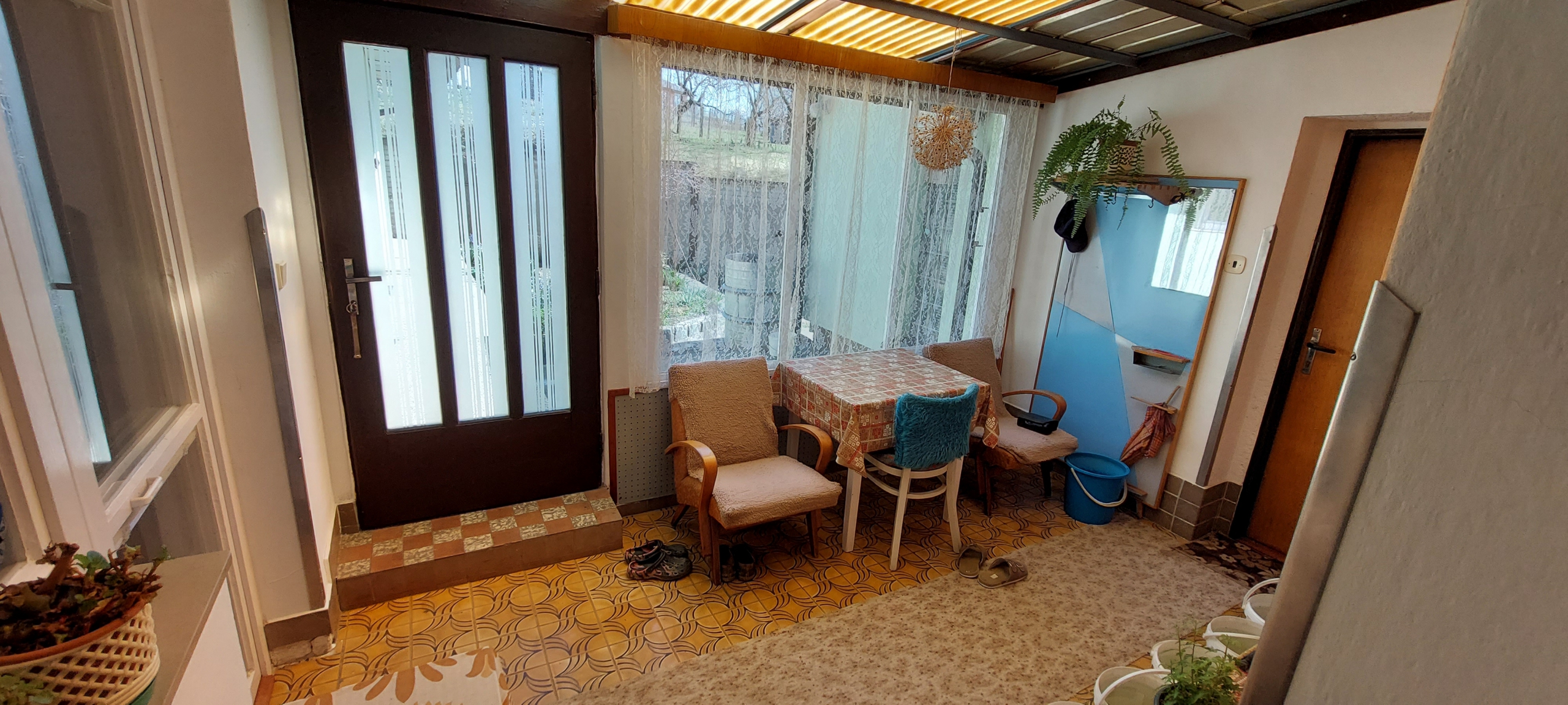 Z předsíně je také možnost projít na zahrádku s posezením, kde jsou přístavby domu a technické místnosti. K dispozici je malý sad a zahrada o celkové výměře 371 m2, vše je za domem přes ulici.