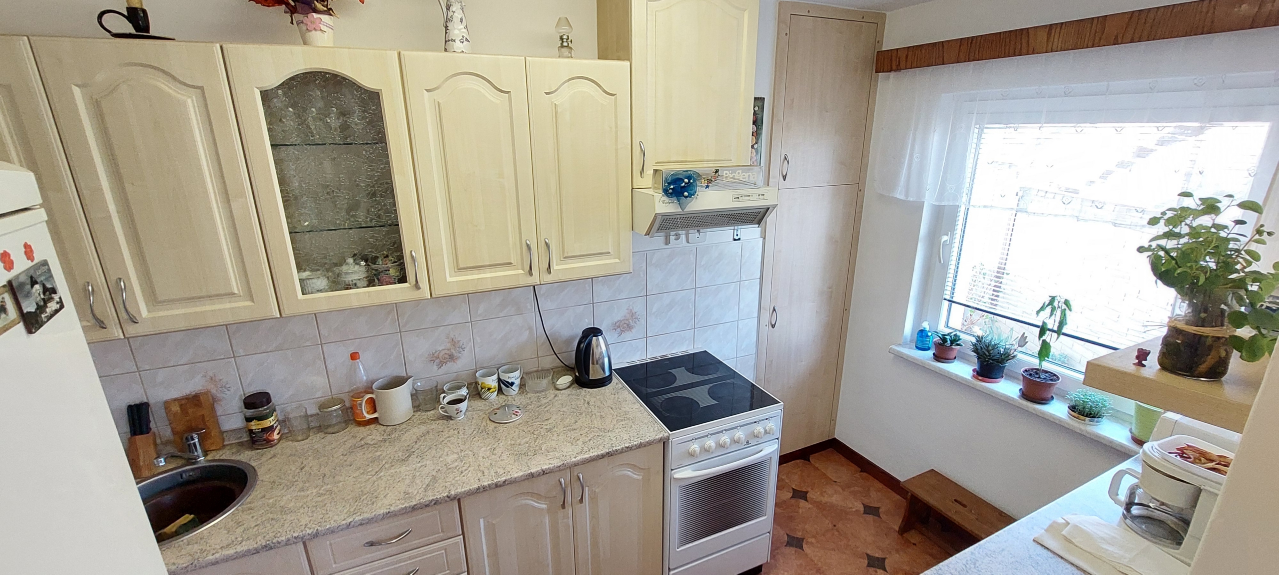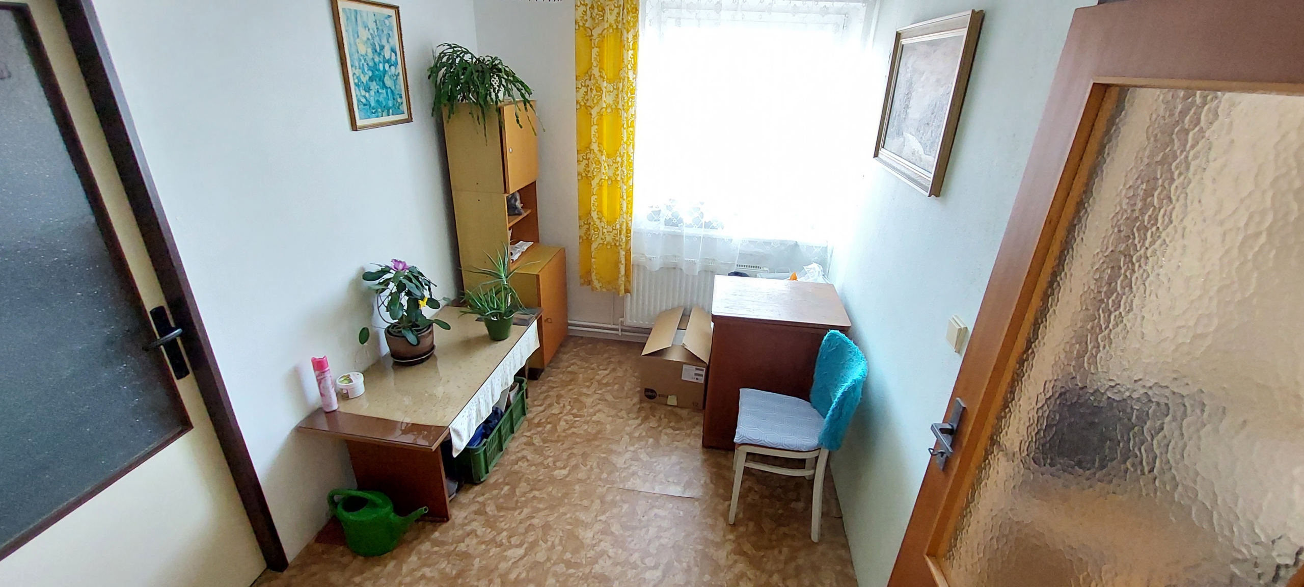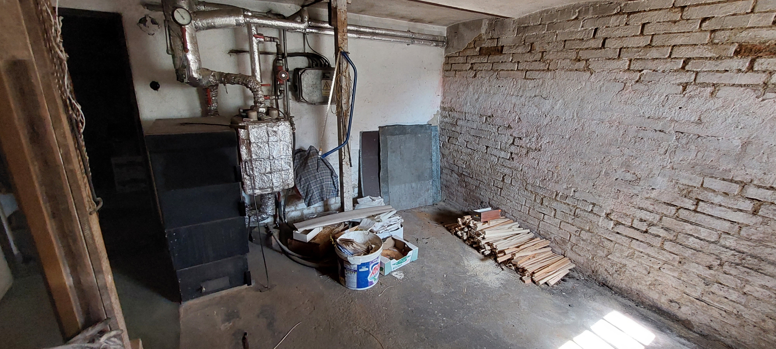 Ze vstupu z boční strany se dostaneme do předsíně, kde následuje chodba z které je pak možné vejít do jídelny se samostatnou kuchyňkou. Z chodby můžeme jít také do jednotlivých obytných místností ( ložnice a dva pokoje) a také je z chodby přístupná koupelna s WC. Na konci chodby je další předsíň na kterou se můžeme dostat i druhým hlavním vstupem a z ní je poté možnost jít do další jednotky 1+1 se sociálním zařízením. Dům je podsklepen a jsou zde k dispozici technické místnosti včetně kotelny a garáže. Dům je vytápěn kotlem na tuhá paliva případně je možné použít elektrický kotel. Zásobování tuhým palivem je velmi pohodlné, jelikož je možné přes otevřené okno naházet přímo od komunikace.