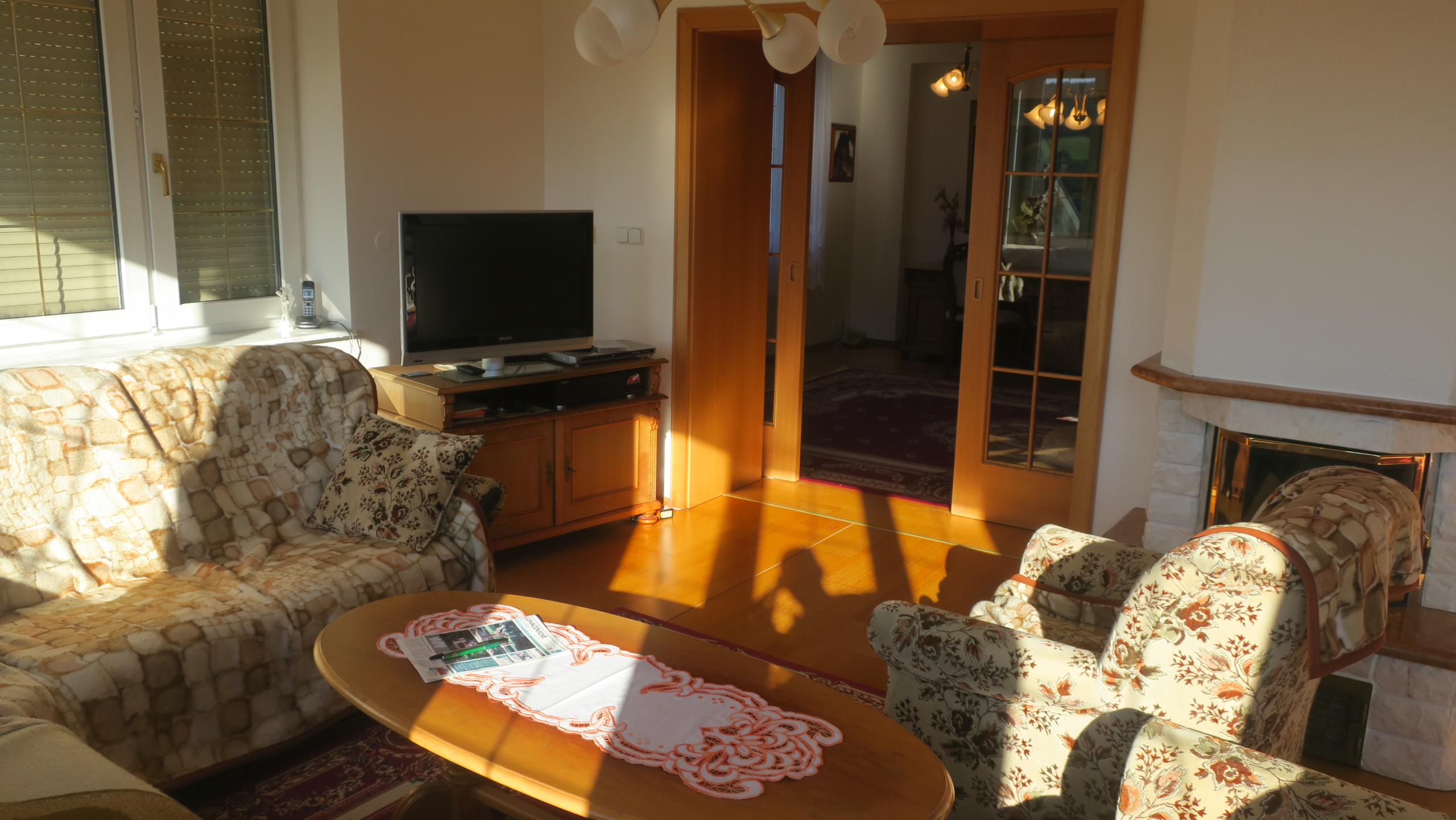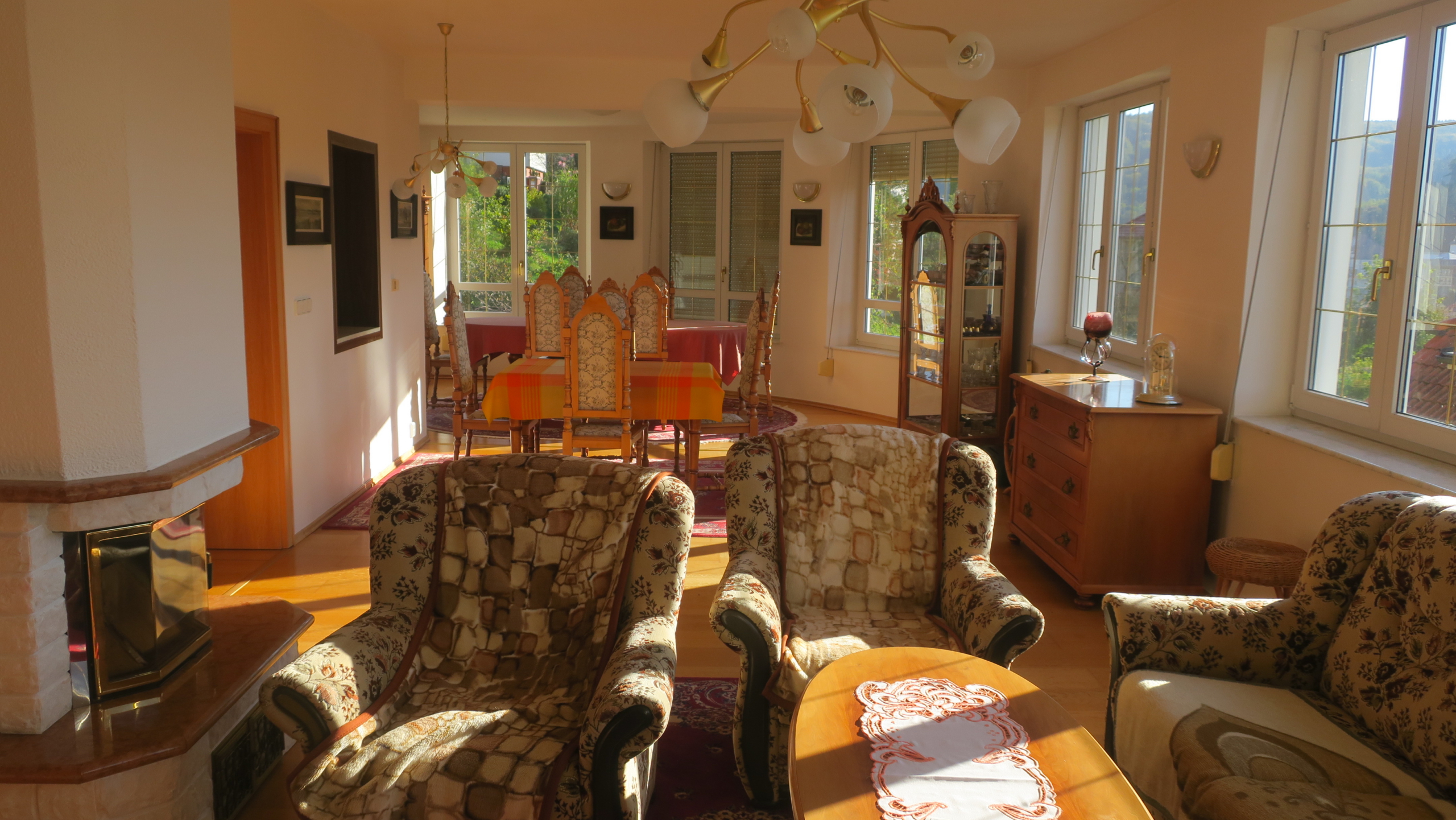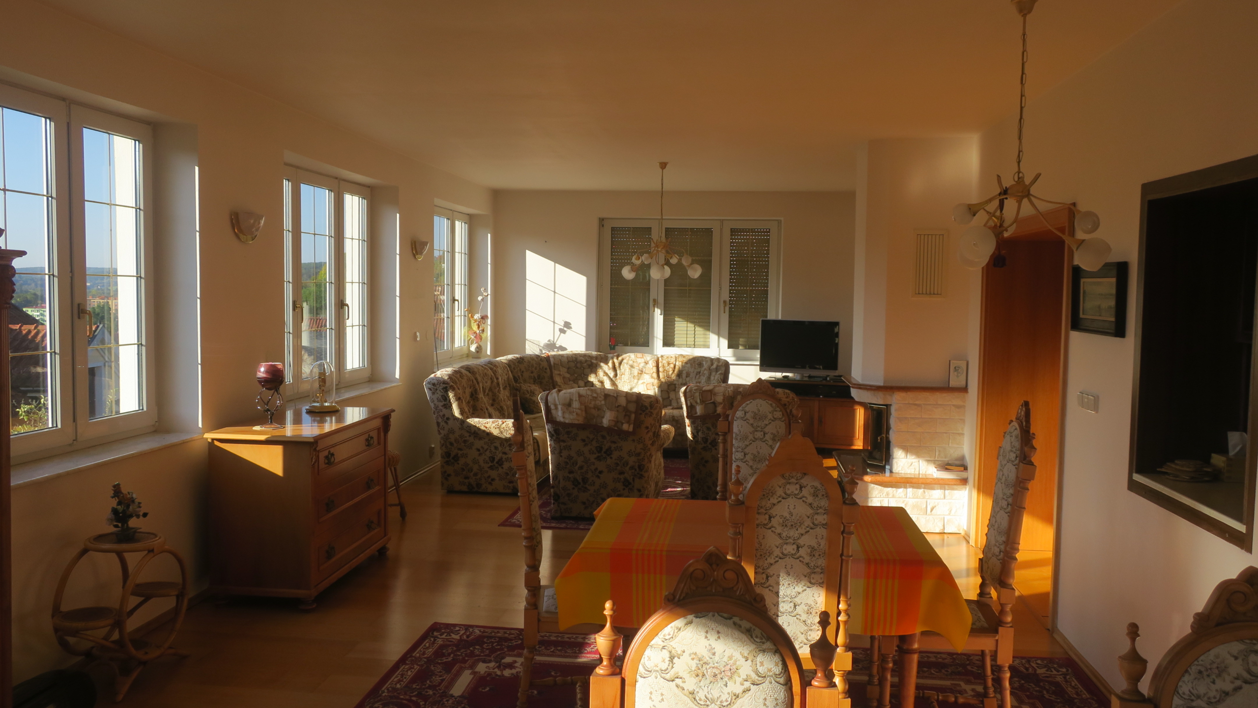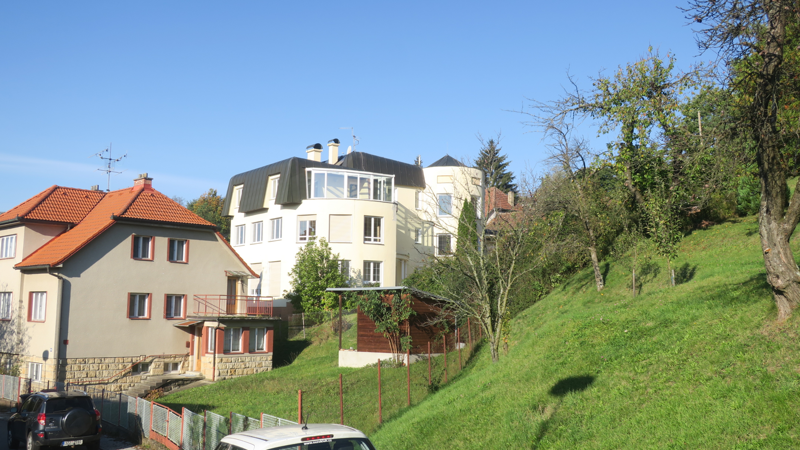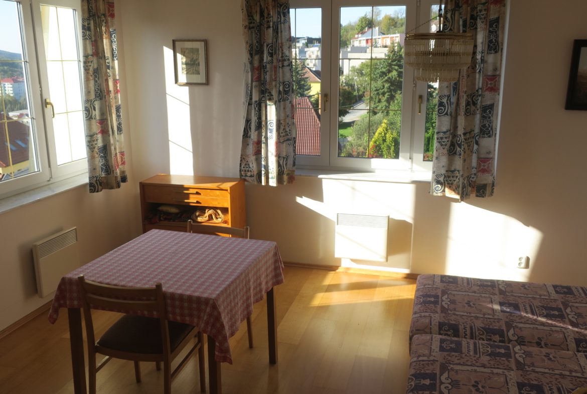Nabízíme k prodeji vilu Berounku ve vyhledávané lokalitě ul. Slunná v Luhačovicích. Vila je postavena na klidném a slunném místě s krásným výhledem do lázní a okolí, pěší chůzí vzdálena od centra 5-10 minut. Nemovitost je třípodlažní s celkovou užitnou plochou cca 496 m2. V prvním nadzemním podlaží, které bylo užíváno manželským párem, se nachází vstupní hala s točitým schodištěm vedoucím do 2. NP a 1. PP. Z této haly se vstupními dveřmi vchází do chodby, ze které jsou vstupy do jednotlivých místností (prostorný obývací pokoj s výhledem, krbem a jídelnou, kuchyně se spížkou, ložnice s koupelnou a šatnou, samostatné WC s umyvadlem, menší obývací pokoj, který je propojen s velkým obývacím pokojem posuvnými dveřmi). Vstupní hala je také propojena chodbičkou s garáží pro 2 auta.