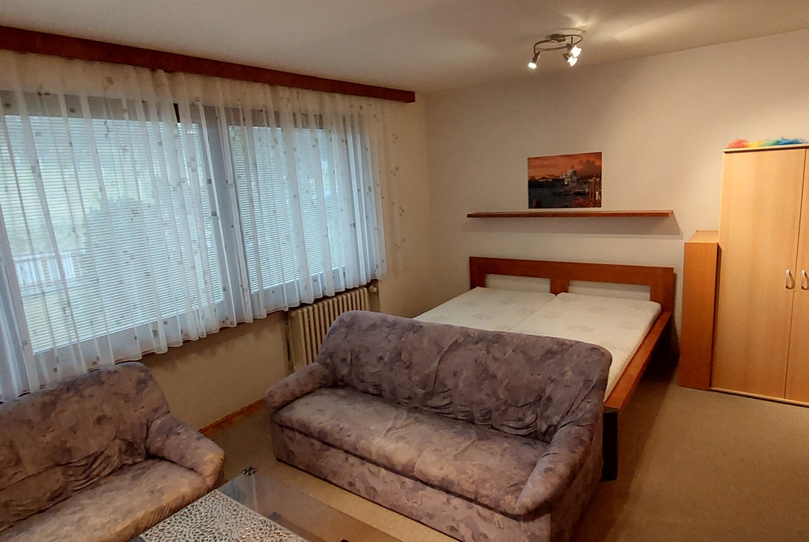 Jedná se o samostatný oddělený bytový prostor nacházející se v 1. N. P. dvougeneračního domu přístupný vchodem z ulice přes zádveří, schodišťový prostor a sestávající z těchto místností: jídelna s kuchyní, 1 x pokoj, chodba, sklep pod schodištěm, koupelna a WC . Bytový prostor je plně zařízen. Topení plynové. K dispozici je parkovací stání u domu. Energetická náročnost budovy G.- štítek nedodán. Vhodné pro jednu osobu. Pro více informací volejte 737030995