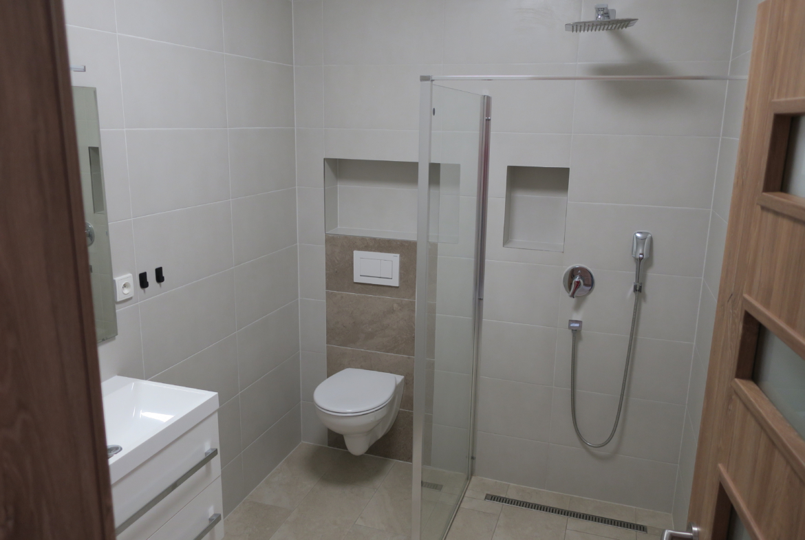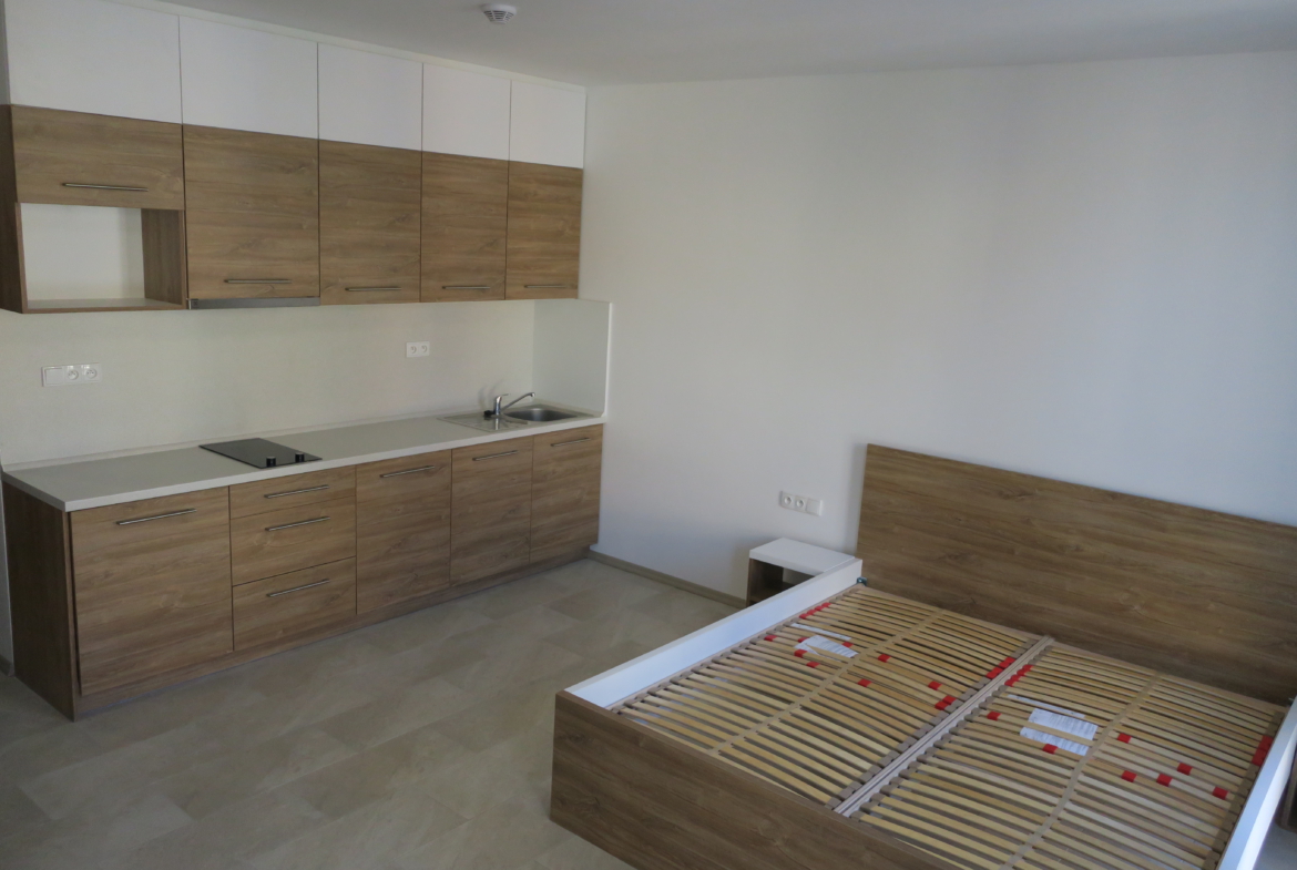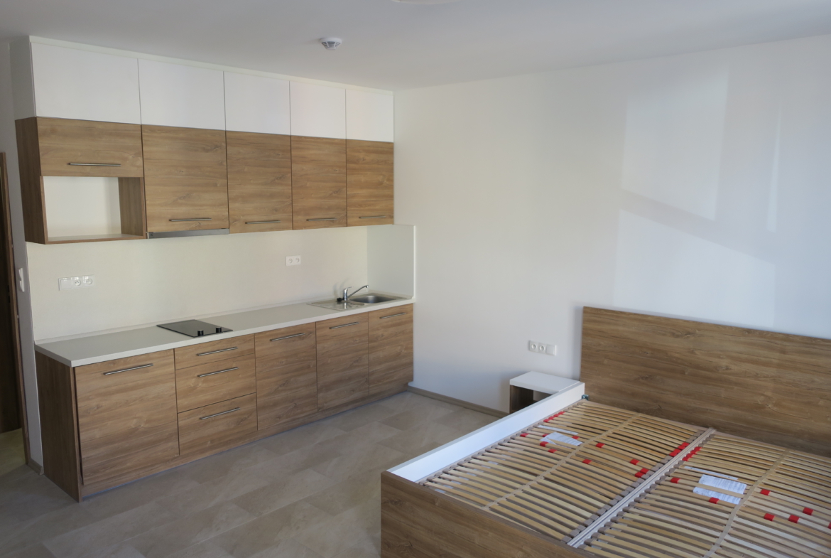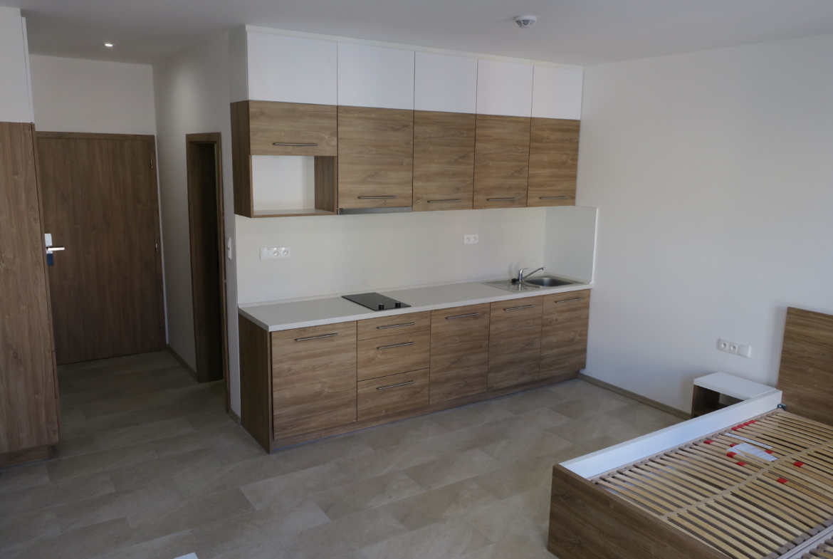 Nabízíme k pronájmu nový byt 1+kk v centru Luhačovic. Jedná se o zařízený nový byt, o velikosti 32 m2, který je vybaven kuchyňskou linkou včetně spotřebičů (lednice, varné deska, digestoř, dřez). U vstupu je vestavěná úložná skříň. V koupelně je WC a sprchový kout. V bytě jsou hliníkové okna, rozvod rekuperace tepla, podlahové topení. Byt bude připraven k nastěhování ihned. Vhodný pro jednu osobu. Energetická náročnost budovy G.