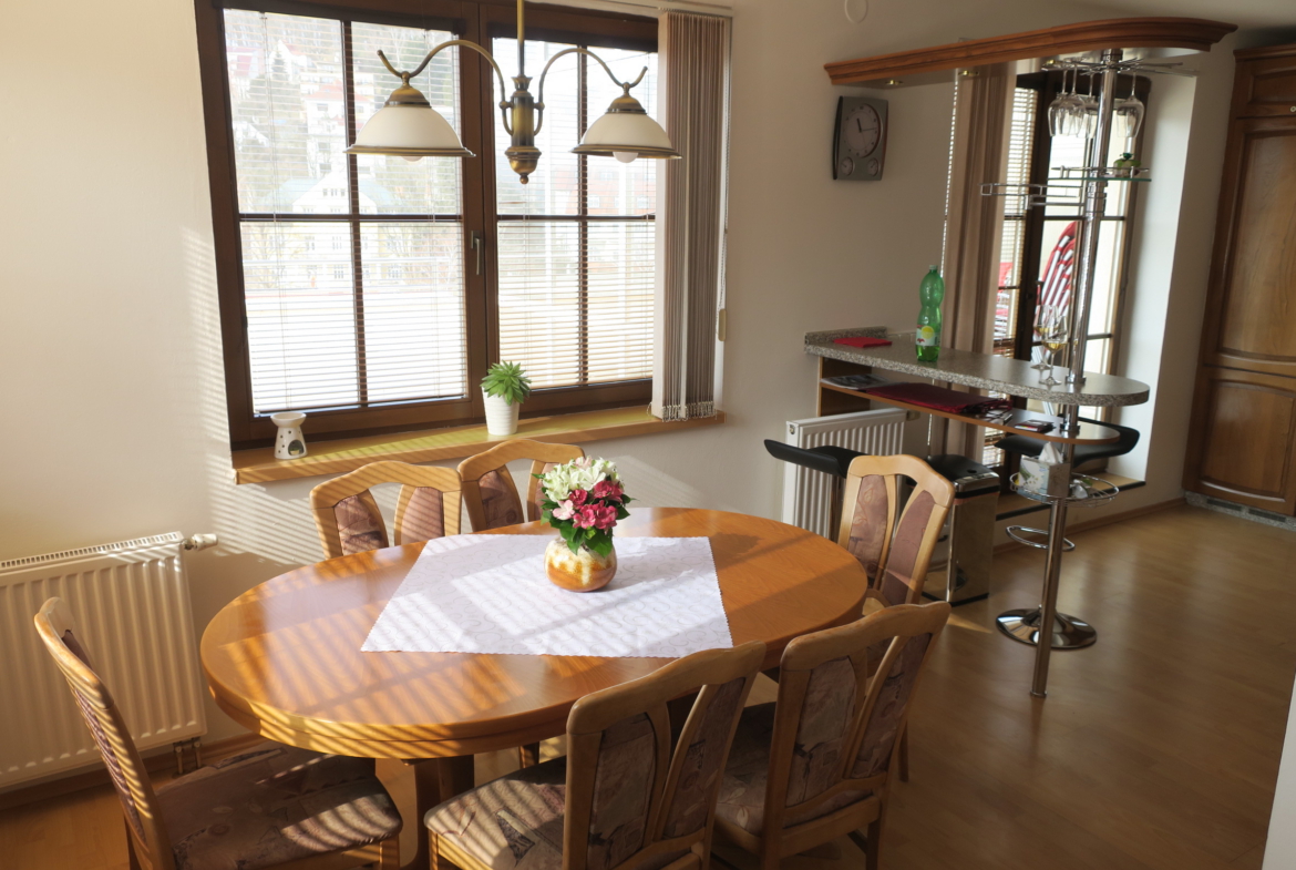 Nabízíme pronájem zařízeného bytu 4+1 v Luhačovicích na ul. Dr. Veselého.  Jedná se o byt v žádané lokalitě přímo na pěší zóně s výhledem do centra.  Bytová jednotka 4+1 má k dispozici balkon, prosklenou terasu, sklep i garážové stání. Celková plocha bytu je cca 160 m2 . Bytová jednotka je kompletně zařízena : kuchyňská linka zhotovená na míru, včetně elektrospotřebičů (odsavač par, varná deska, pečící trouba, lednice s mrazákem, myčka), jídelní stůl včetně židlí. V obývacím pokoji je sedačka včetně nábytku a TV, ložnice včetně úložných prostor a postelí. V koupelně je k dispozici masážní sprcha, byt má samostatné WC. Energetická náročnost budovy G-štítek nedodán. K bytu patří garážové stání a sklep. Byt je volný od 1.3.2021 Pro další informace volejte 737030995.