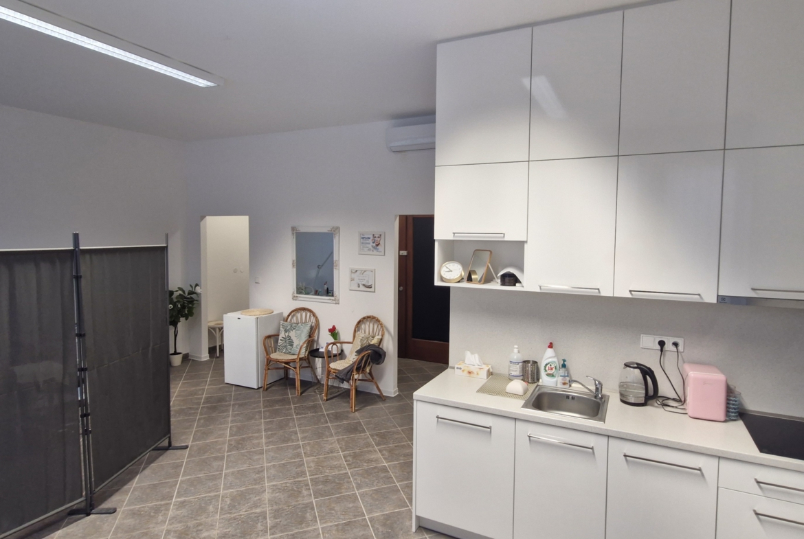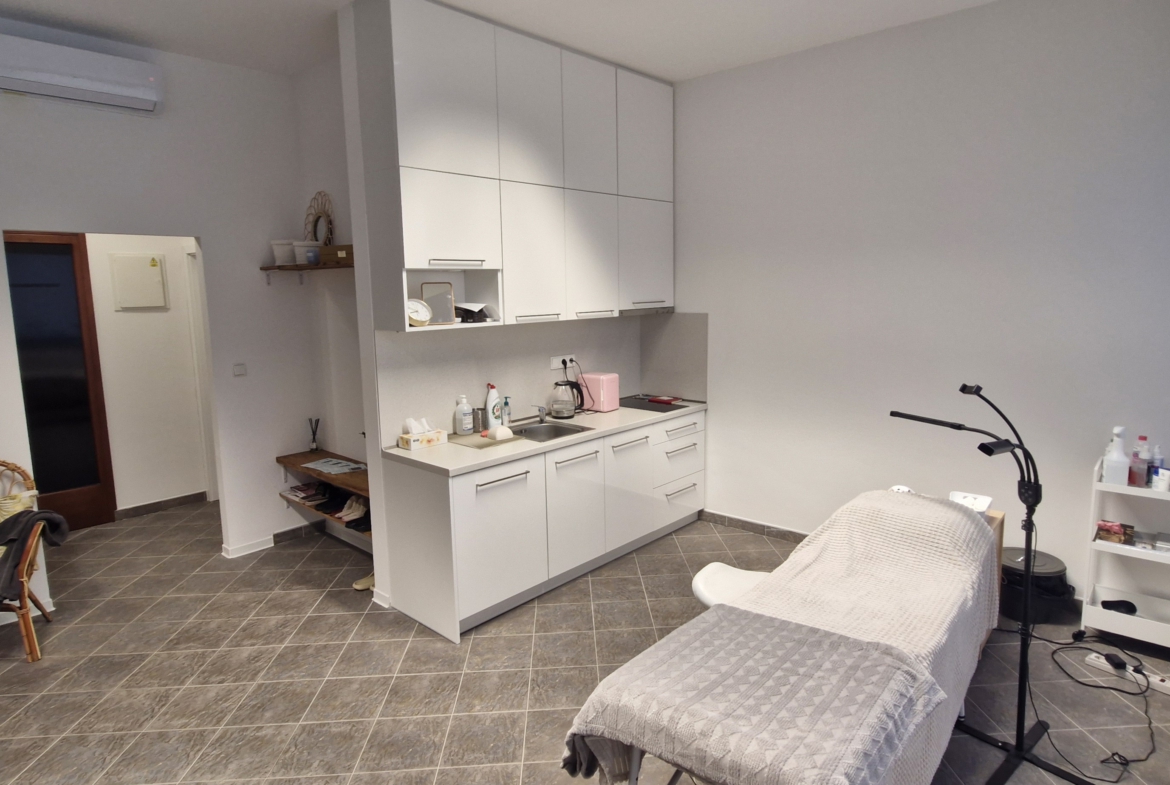 Prostor tvoří jedna místnost, která je v současnosti využívána pro služby péče o tělo (masáže, fyzioterapie apod.). Součástí je samostatné sociální zázemí se sprchovým koutem a toaletou, dále kuchyňká linka.