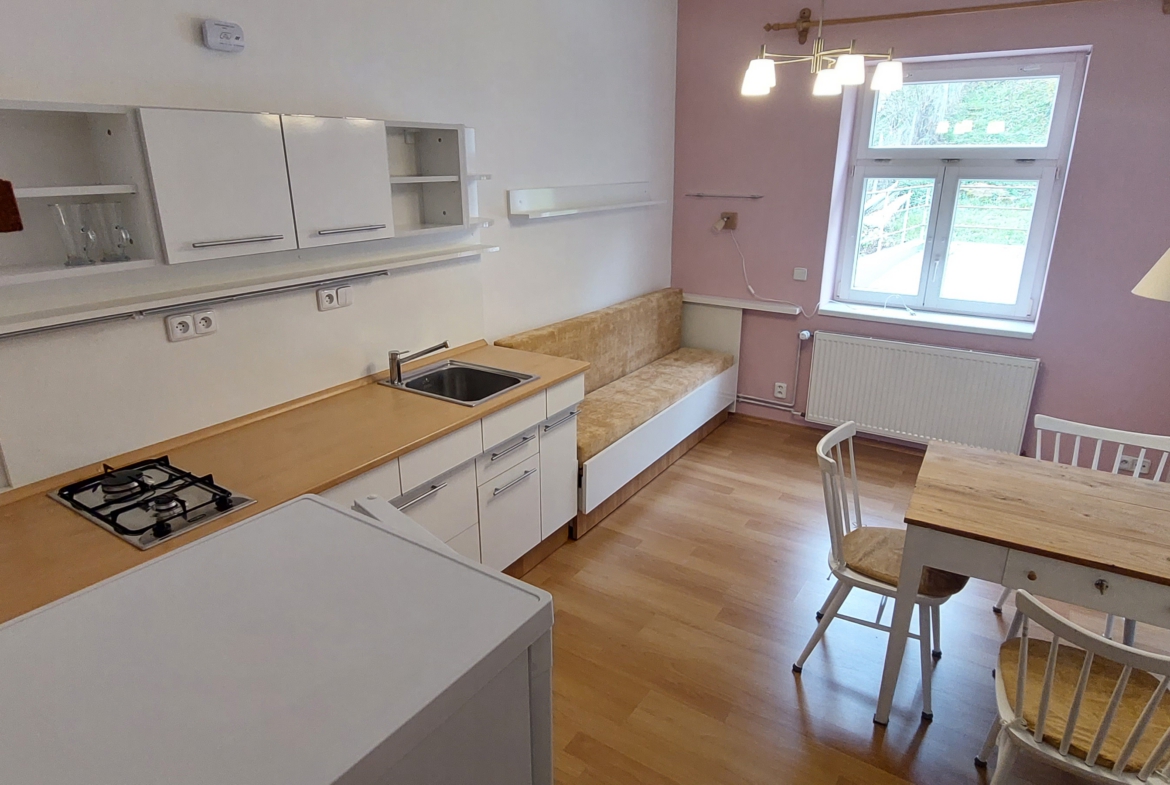 Nabízíme k pronájmu byt 1+1 v Luhačovicích. Jedná se o bytovou jednotku, která se nachází v prvním patře historické vily o celkové výměře cca 40 m2. Jednotka je přístupná hlavním vchodem z ulice přes chodbu a schodišťový prostor sestávající z těchto místností: samostatná kuchyně s jídelnou, ložnice, chodba, koupelna se sprchou, samostatné WC. Bytový prostor je zařízen. Energie jsou odpočitatelné. Vhodné max. pro dvě osoby. Energetická náročnost budovy G – štítek nedodán. Byt je k dispozici od 1.1.2023. Pro více informací volejte 737030995.